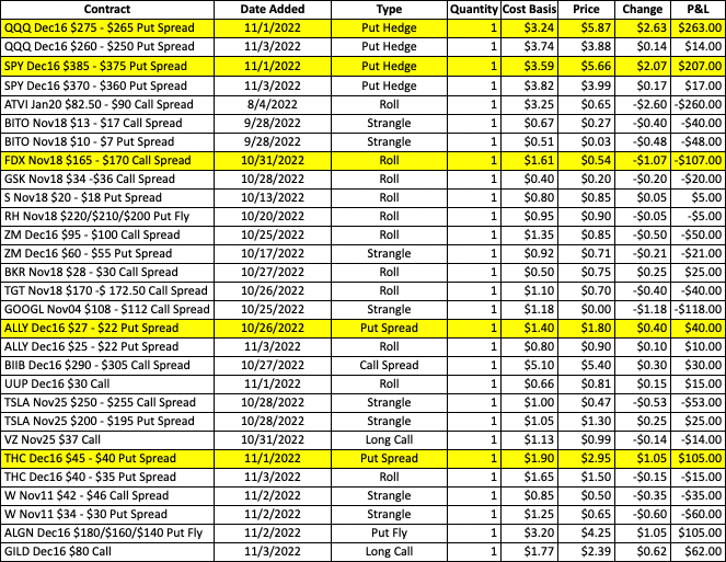 - CAT had a big gap higher this morning, and unfortunately, the move has taken away a majority of the potential for the Dec16 $220 – $230 call spread before it could be initiated. We need to hold off opening the trade as it doesn’t make sense to chase stocks in this environment.