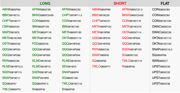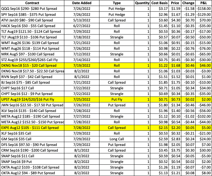 The constant, steady grind higher across the market is lifting even the recently broken names. DFS had formed a nice bearish setup post-earnings as it hung below all near-term moving averages and the 100 level, but it is beginning to recover along with the overall market now, and today’s rally is hitting the tight stop for the Sep16 $97.50 – $90 put spread. The trade will be closed this afternoon and we will watch for a new setup on the name.