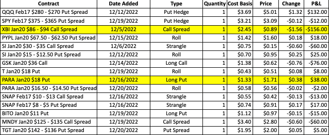 A 1% overnight/premarket rally on DIA has lifted the ETF into the low-330s and it has put it above the initial target range for the Jan13 call spread. Our rule is to hold off initiating a new position if the stock/ETF hits the preliminary target before the position is opened, so, unfortunately, we will need to hold off opening the proposed trade. We can watch to see if there is another quick setup on DIA in the near future.