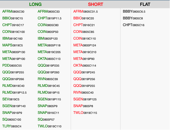 DKNG is having a strong session today, with a move through the key 100day sma and 15 level a notable early development. The Nov18 $15 – $20 call spread roll up is now into the money, and this is a nice opportunity to lock in some more gains on the trade as earnings are due out later this week. The plan will be to close the current spread and roll up to a lower debit Nov18 $17.50 -$22.50 call spread that will be held into the report.