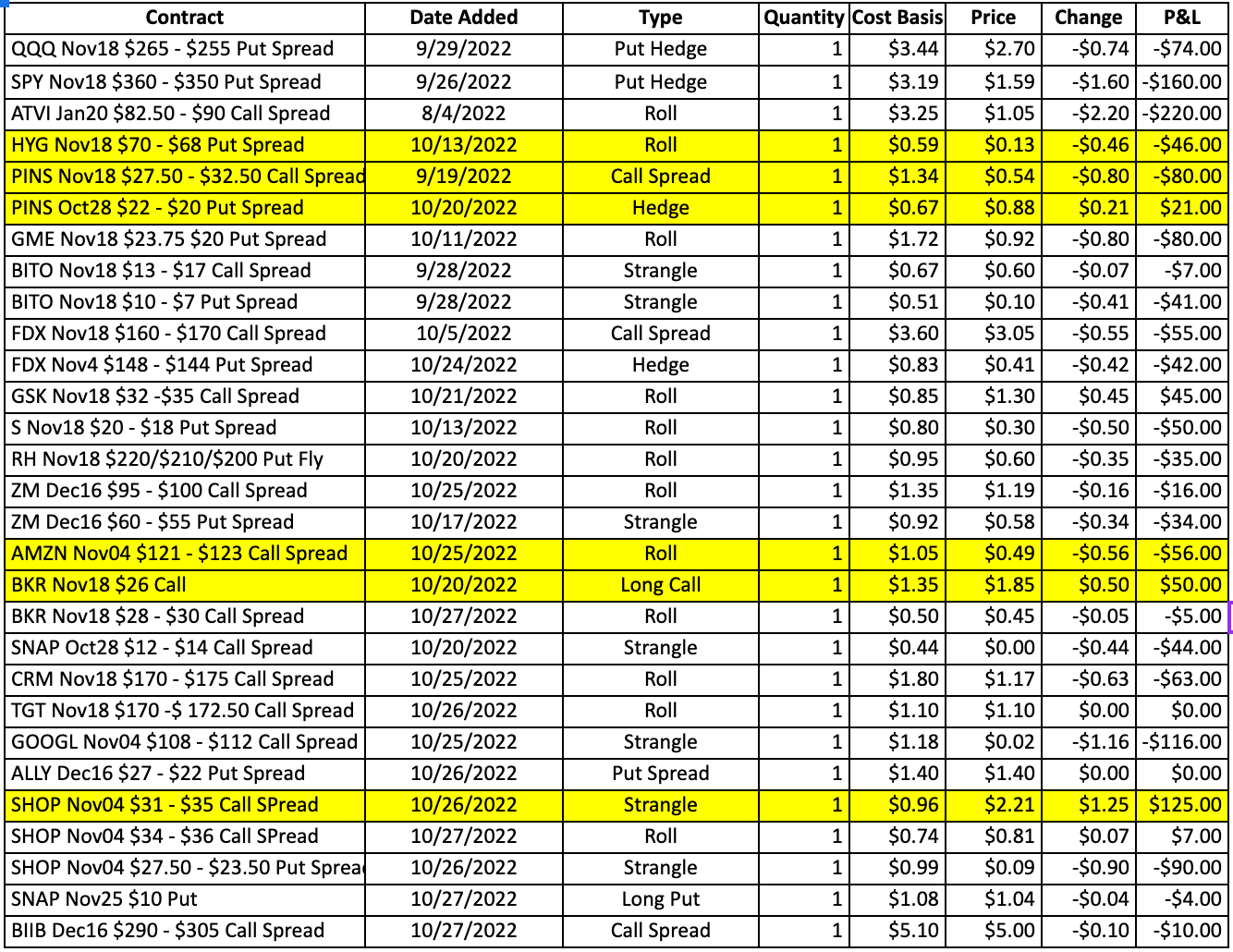 GSK is up again this morning, and the green start is offering a nice opportunity to lock in more money on the trade. The plan will be to close the current Nov18 $32 – $35 call spread and roll up to a lower debit Nov18 $34 – $36 call spread. The next target is 34.25+.