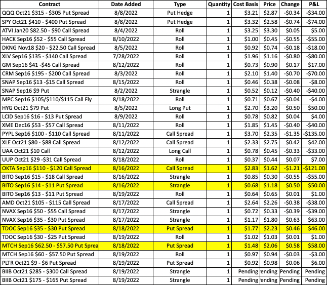 More risk-off action is spilling across the market to start the new week, and HYG‘s continued slide is nailing the initial target zone (76.50) for the Oct21 $79 put. The plan will be to close the current put and roll down to a lower debit Oct21 $76 – $72 put spread. The next target will be <75.25.