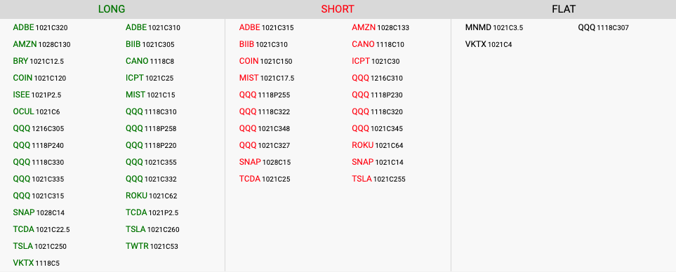 LCID popped off the open yesterday and the Nov18 $12 put was opened well below the proposed action area, but that also meant the stock was closer to the 13.15 technical stop. LCID is into that stop level this afternoon, but instead of closing the position, we are going to sell a Nov18 $10 put to turn the trade into a low debit put spread. As a lagging stock, LCID should turn lower quickly if the indices roll over, so it makes sense to stick with a trade for now. If it resets above 13.90 (the 20day sma), then we will exit the position.