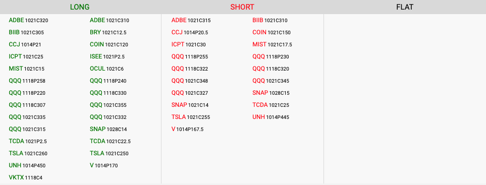 Take the money and run on MA. The strong close yesterday has led to a ~$4 follow-through gap this morning, and the run is nearing 299 quickly. The Oct21 $300 – $302.50 call spread will be closed for a nice winner to wrap up the strangle.