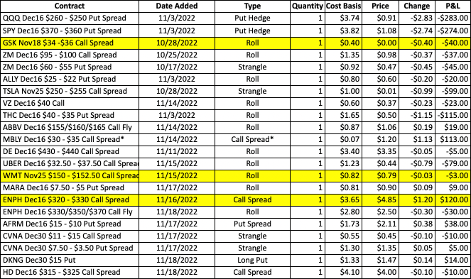 Let’s book MARA. The stock opened weak this morning and hit 7 early, so the plan will be to close the Dec16 $7.50 -$5 put spread roll down into the initial weakness. We can watch for consolidation now to potentially revisit another trade on the name.