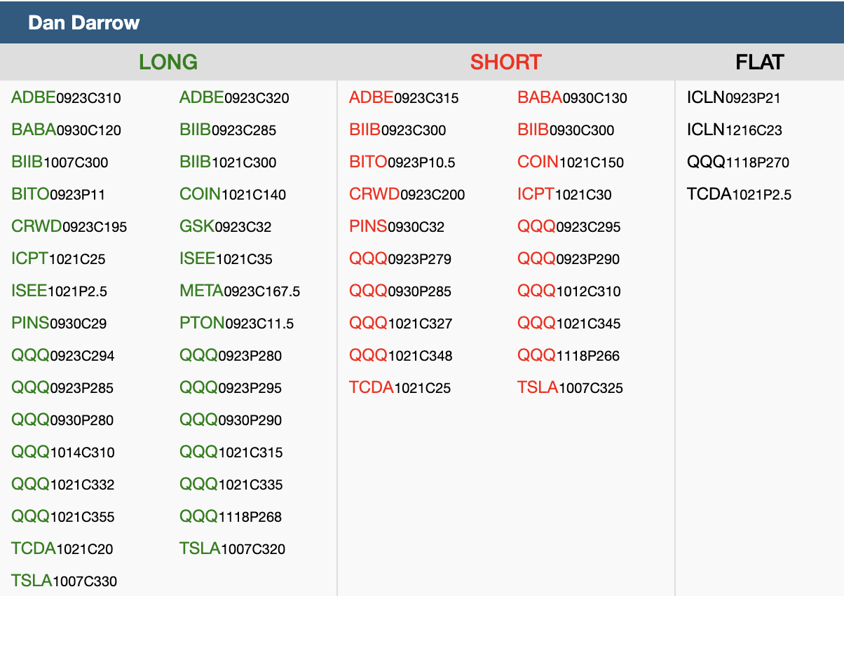 SHOP was on close watch today and it has come through for the strangle. A break of the critical 30 support level has led to a sharp drop down near 28, and the Sep30 $28 – $24 put spread portion of the strangle has made back all of what it was down and then some. With time running low, the plan here will be to close the put spread and roll down to an Oct21 $26 – $23.50 put spread. The next target will be <26 on the downside. In addition, the Sep30 $36 - $39 call spread roll up can be closed now.