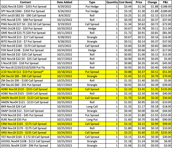 TGT has popped quickly to 168+ this morning, so it is time to lock in some money on the Nov18 $167.50 – $175 call spread. The plan will be to close the current spread and roll up to a tighter Nov18 $170 – $175 call spread. The next target is 172+.