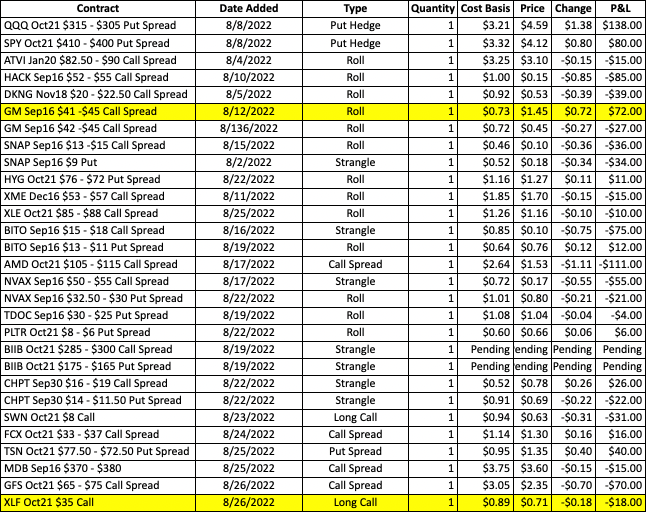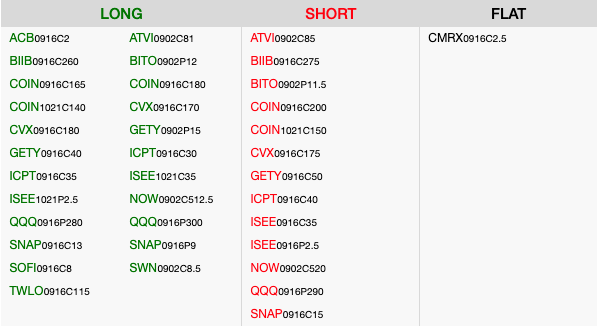 TSN has hit the initial target (<77.25), so it is time to lock in some money on the Oct21 $77.50 – $72.50 put spread. The plan will be to close the current spread and roll down to a tighter Oct21 $75 – $72.50 put spread. The next target is <74.75.