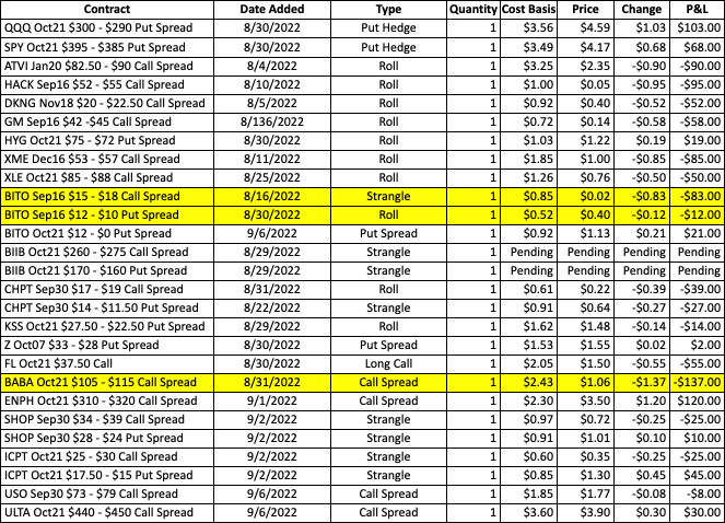 ULTA has been impressive this week. A strong bounce yesterday morning and a strong start today has led to a move to the initial target zone for the Oct21 $440 – $450 call spread, so it is time to scale back risk. The plan will be to close the current spread and roll up to an Oct21 $450 – $455 call spread. The next target is 450+.