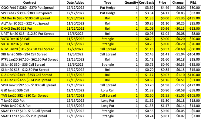- Let’s book the remainder of UPST. The stock is sinking under 15, and the Jan20 $15 – $12.50 put spread roll down is moving into the money. The trade will be closed to lock in the rest of the winner.