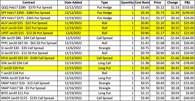 - PARA has found buyers around 16.75 again off the open, so we will work quickly to lock in some money on the Jan20 $18 put and roll down to a lower debit Jan20 $16.50 – $14.50 put spread. The next target is <16.