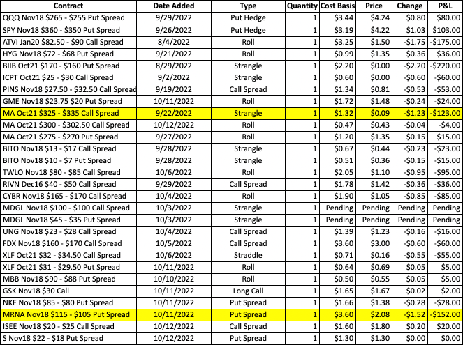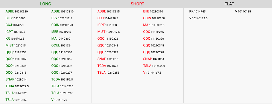 Regarding the two trade ideas from yesterday’s letter, we will hold off initiating the XHB Nov18 put spread following the large gap open (we can wait to see if it stabilizes in a lower range around 55-56 to possibly revisit a trade), but we will move forward with the NFLX Oct28 call spread. Because volatility is high and the early bounce is very tepid, it is important to plan your size on NFLX accordingly.