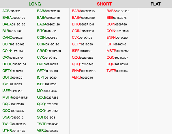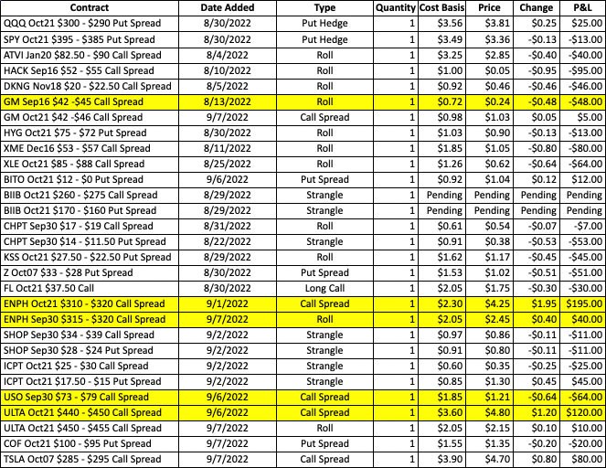 Z got a price target bump today, and the positive news is helping the stock push green in a broadly weak tape. The early run has sent Z above the 35.50 stop level, so the Oct07 $33 – $28 put spread needs to be closed. We can revisit a new trade on this in the future if it slides back below 32.50-33.
