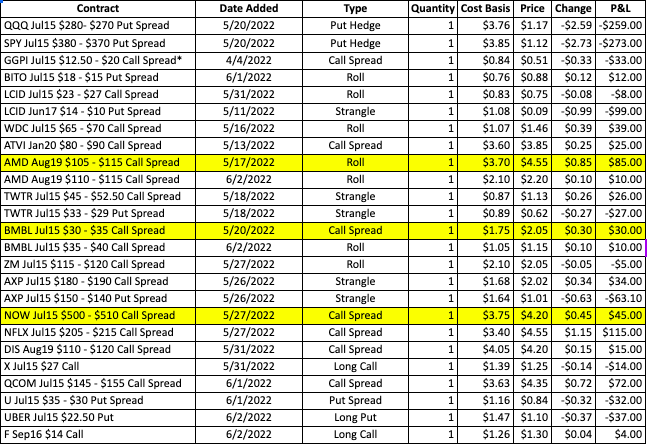 * The following Open Positions pertain to the Options In Play trade ideas from this and previous editions. Disclosure of the Trader Co-Author’s actual portfolio holdings, as of the date of each publication, is made below under “Trader Author Portfolio Holdings.”.