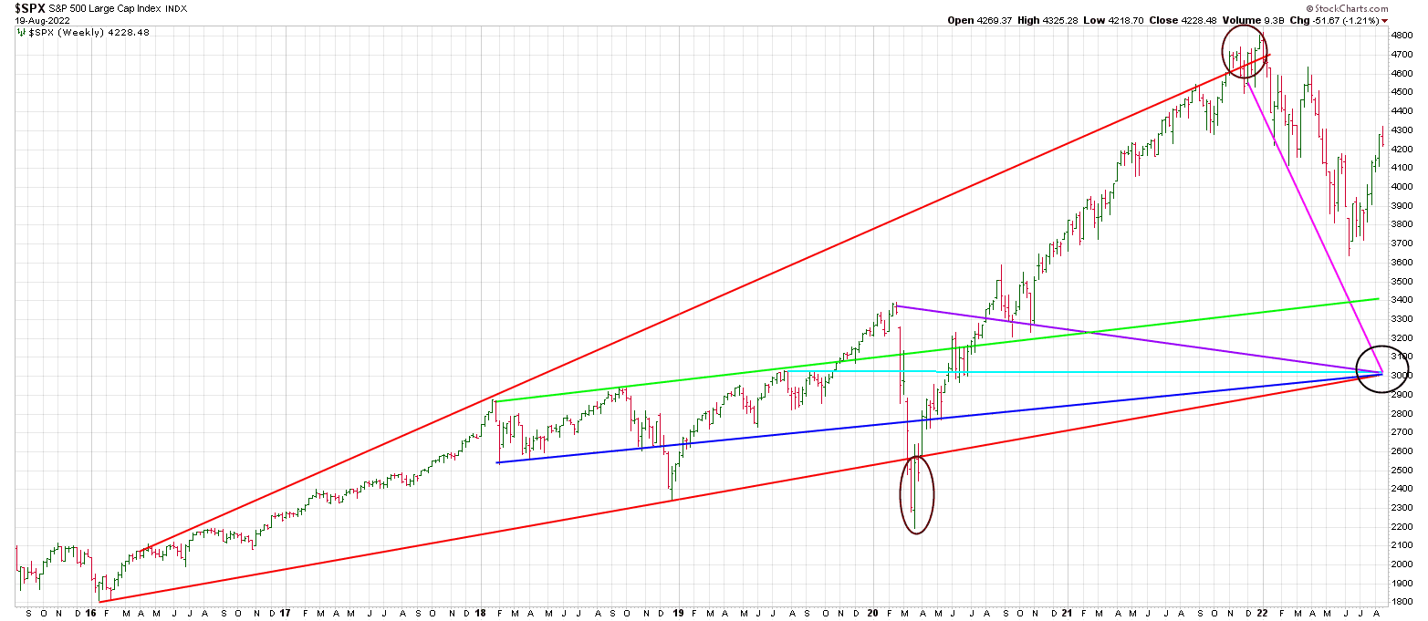 In addition, note the remarkable cluster of trend lines into this 4300 price zone and mid-August.