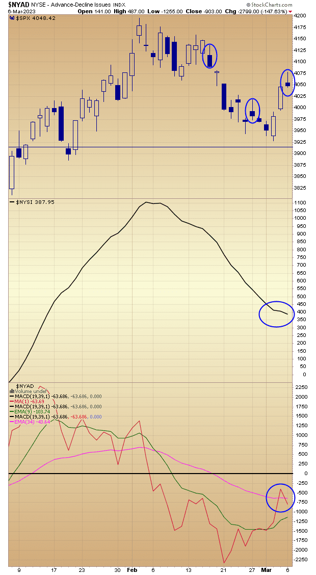 NYSE issues declining were 1981 versus 1078 advancing: breadth stunk up stonks.
