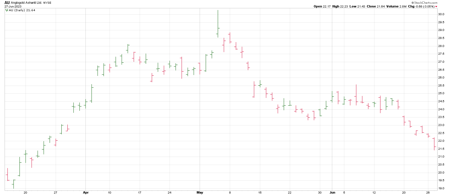 One of the best performers amongst the gold miners this year was AU which ran from 12 in September to 30 in early May.