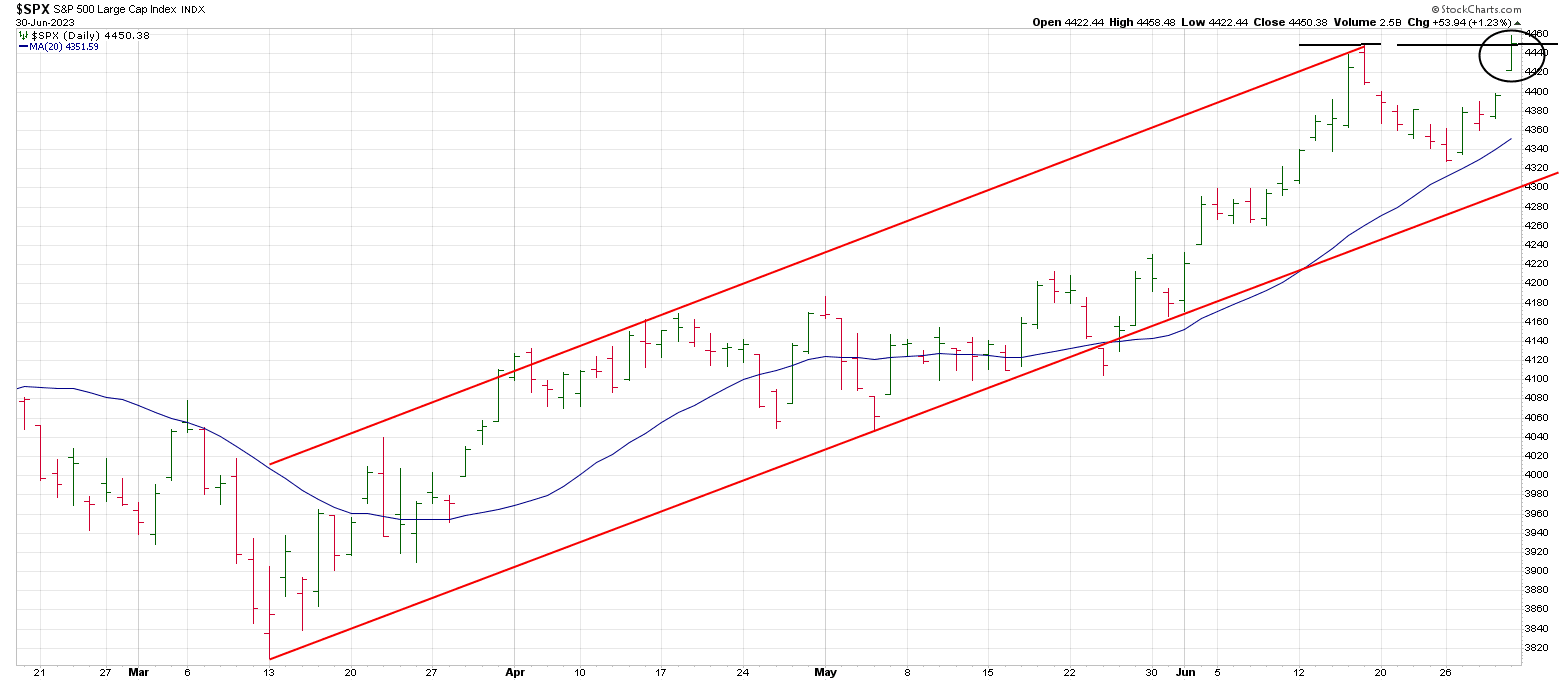 Going into this time period, the SPX gapped up to close at a new high for the move off the October 2022 low.