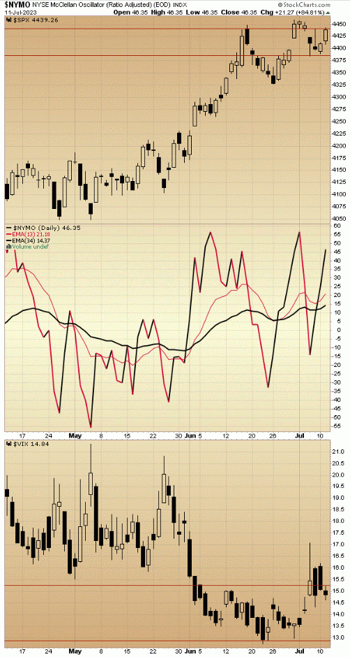 The VIX closed at 14.84 which is 14.5% ABOVE its low of June 22, 2023—12 sessions ago.