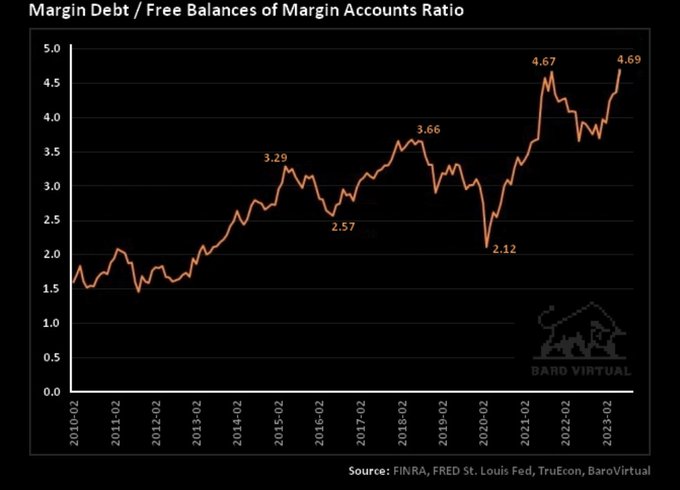 Checking margin debt relative to cash we are at extreme risk levels.