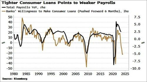 Banks willingness to make consumer loans is falling off a cliff.