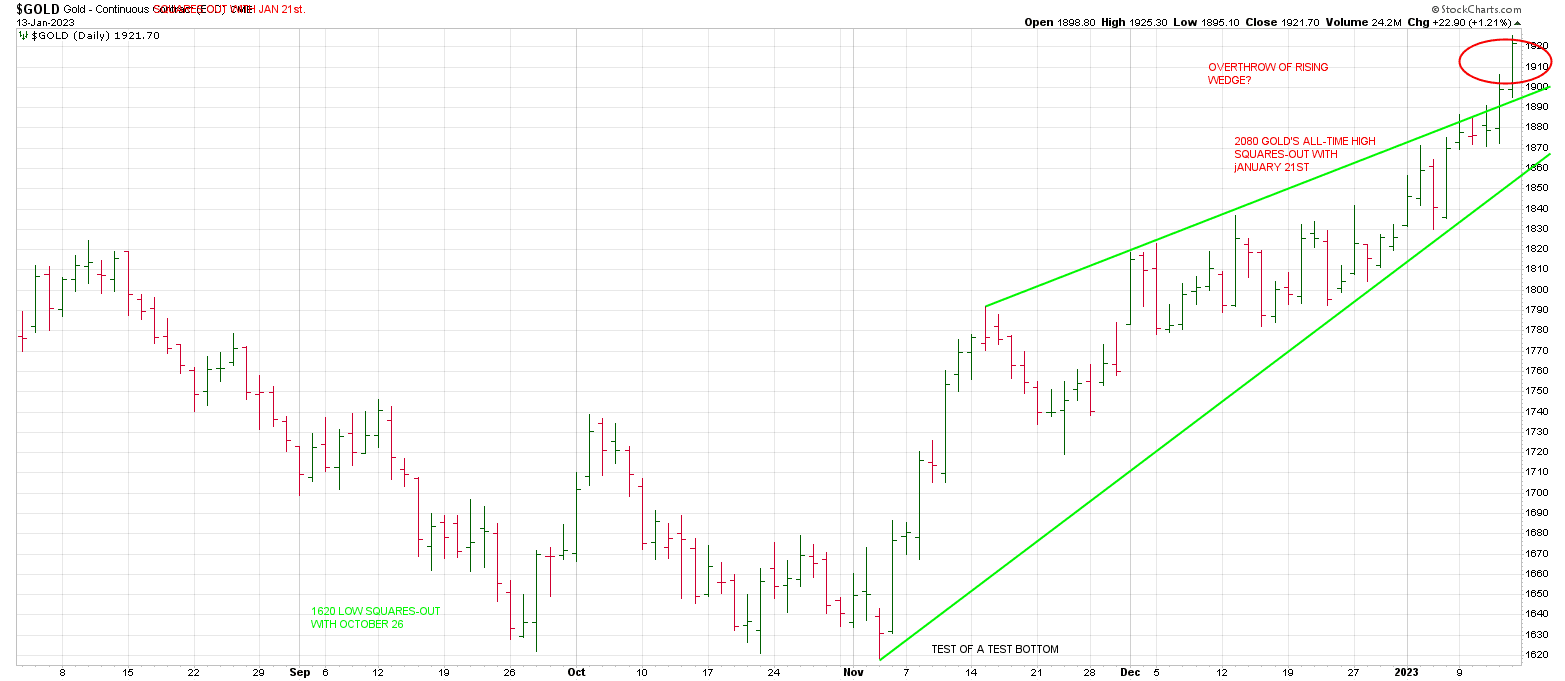 The current spike is in keeping with our outlook that gold could run into late January—based on cycles, as well as a potential time/price square-out: