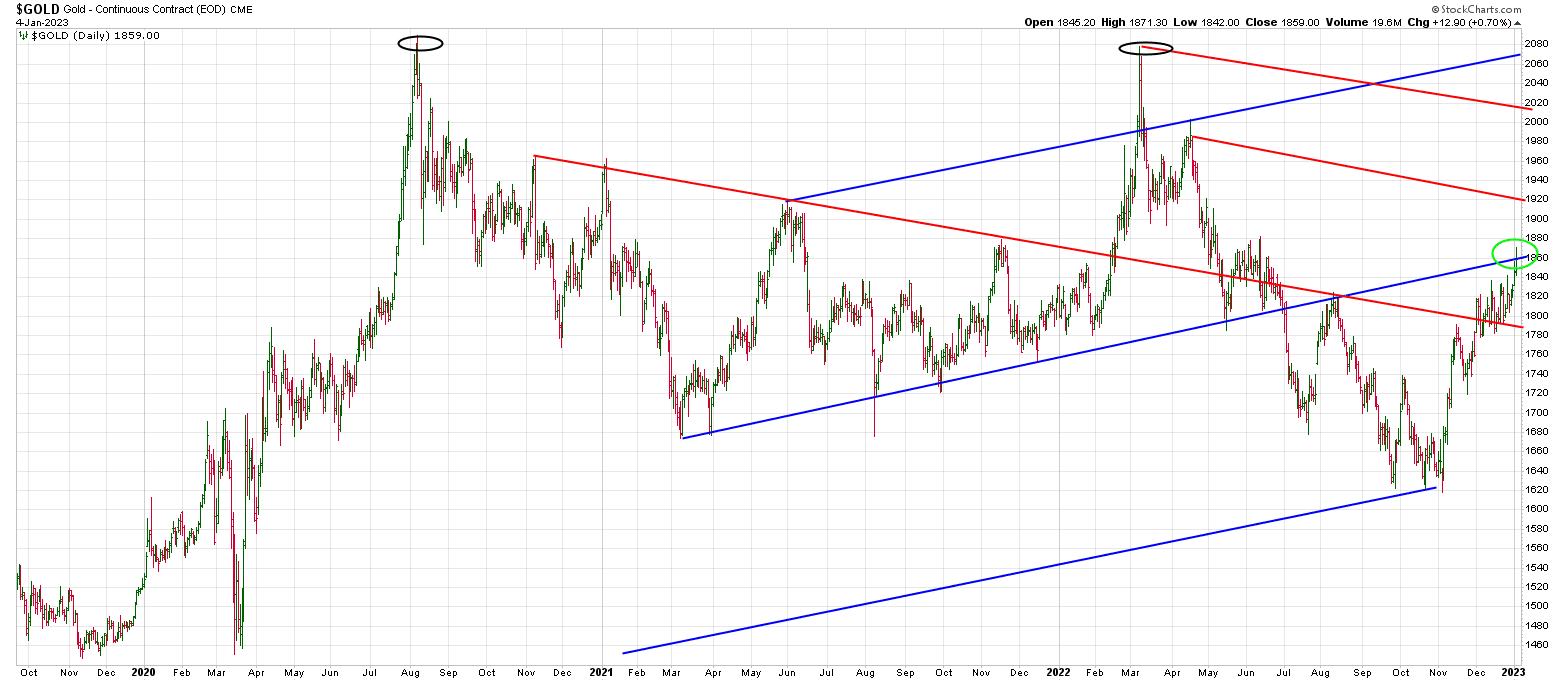 In our gold outlook for 2023, we used the magic of trend channels to analyze gold’s structure seen in the second gold chart above