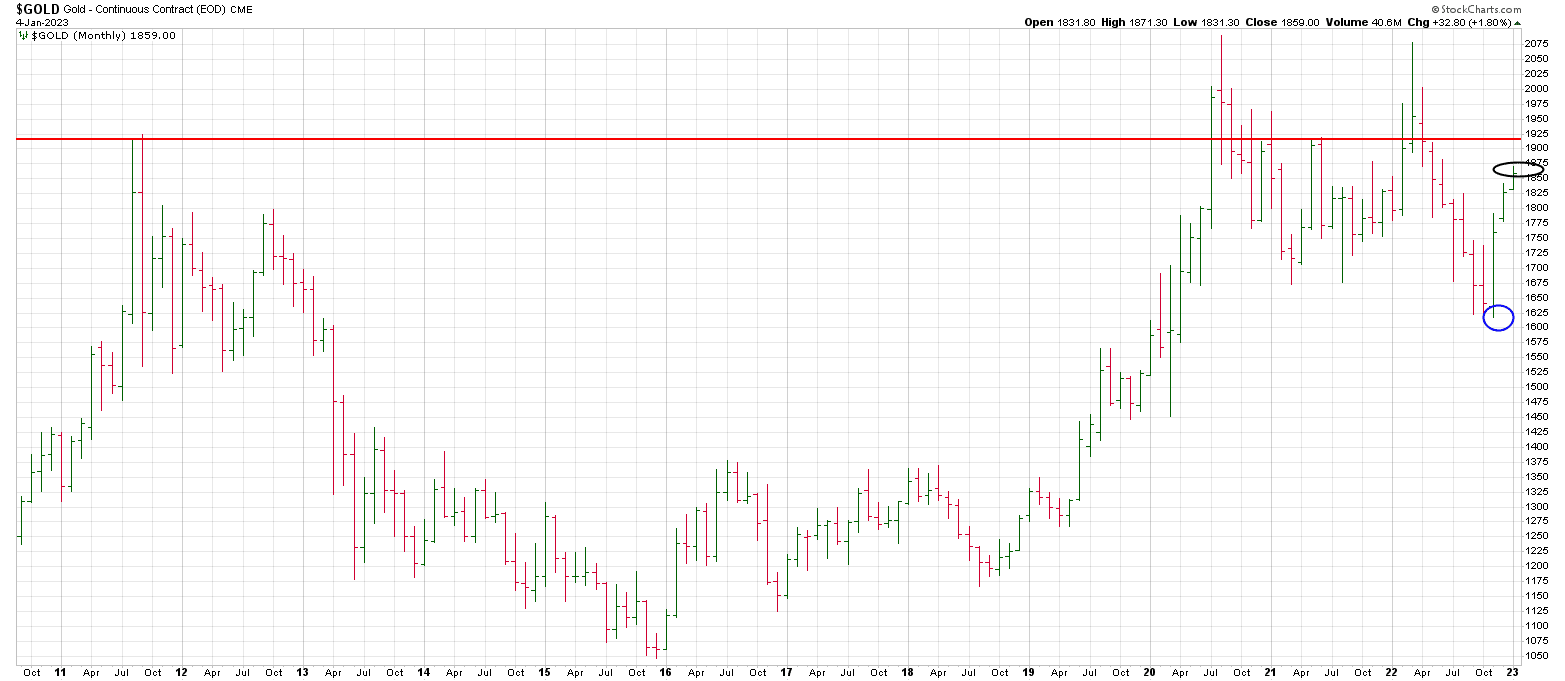 In the 2023 outlook on gold, we went on to say that gold’s turn-up in September 2022 came on cue—on the anniversary of the September 2011 major top at a price of 1921.
