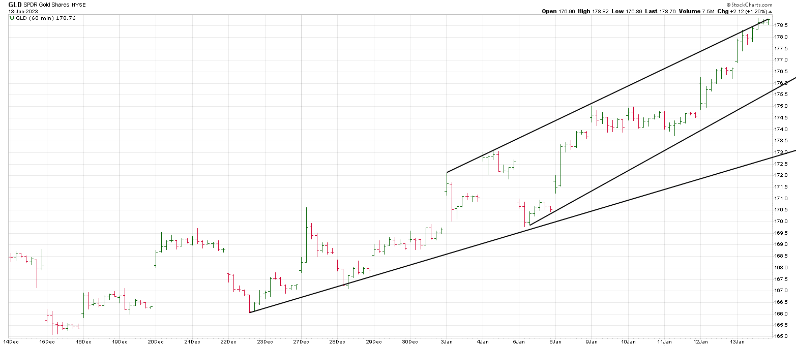 GLD closed at 178.76 on Friday on the weekly closing basis nicely above the aforesaid 176 level, theoretically opening the door to higher prices.