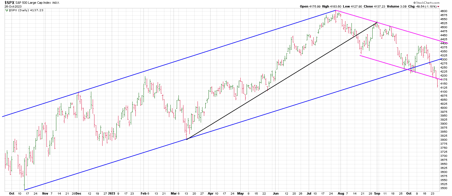 Notice that Thursday the SPX closed below a declining trend line from the July 2023 top.