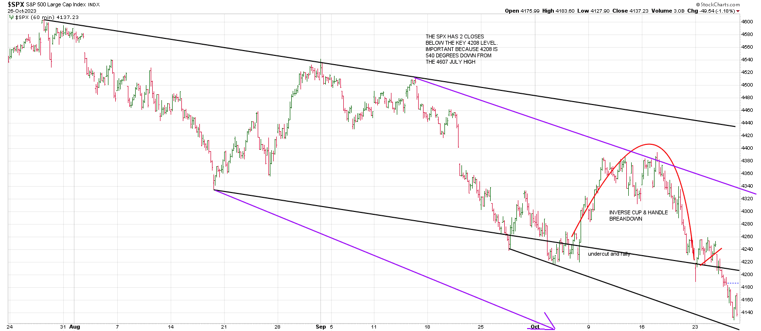 The above hourly SPX depicts the waterfall decline since October 16th.