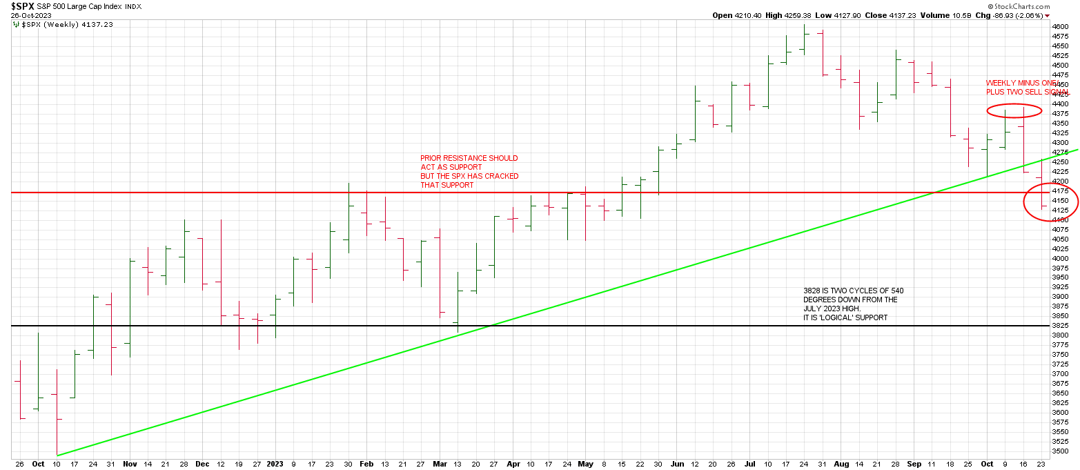 In sum, having broken logical support …the horizontal red line, a drop to 3828 could play out at any time.