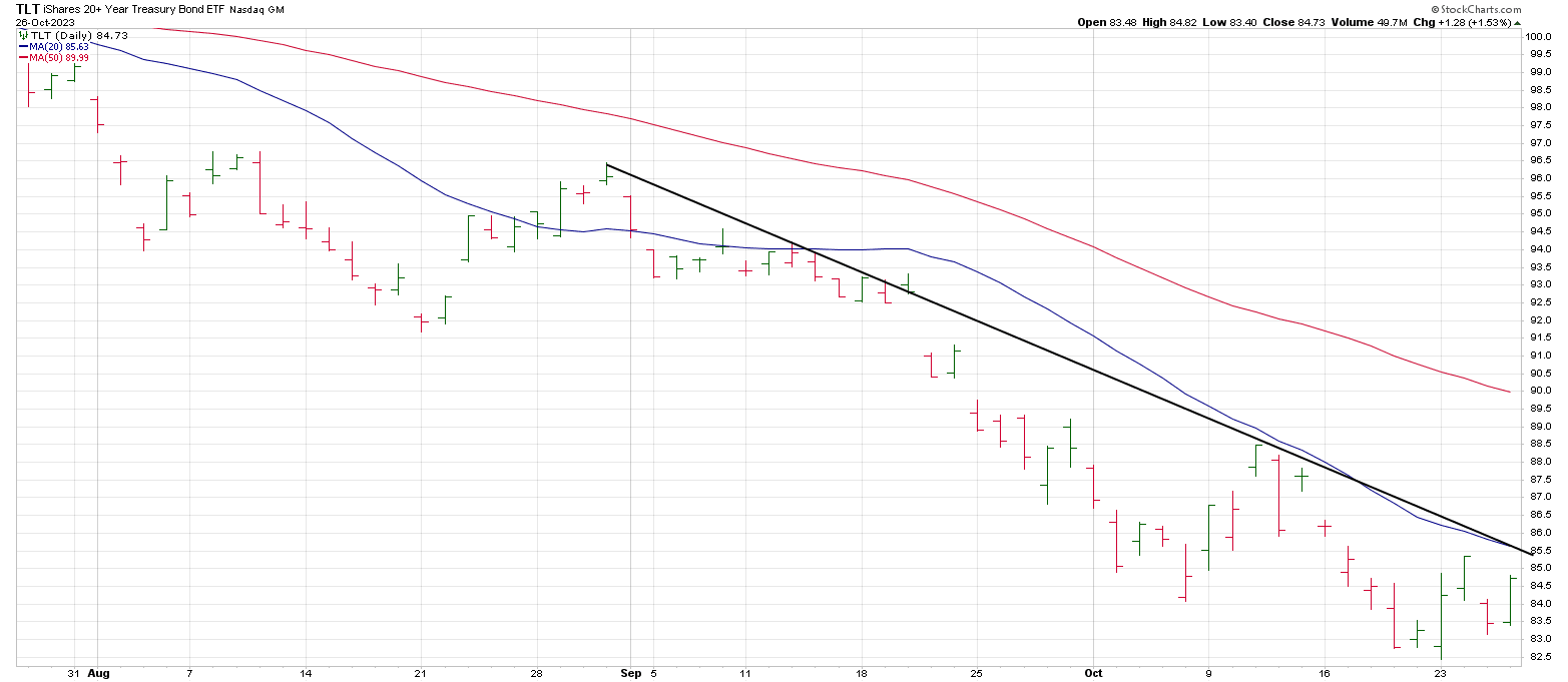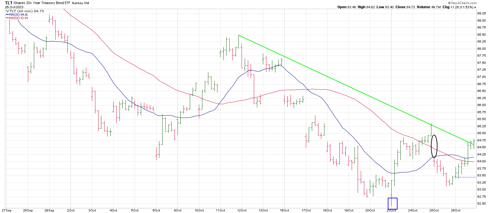 An hourly TLT shows the large range signal reversal bar from the 83 region on October 23rd.