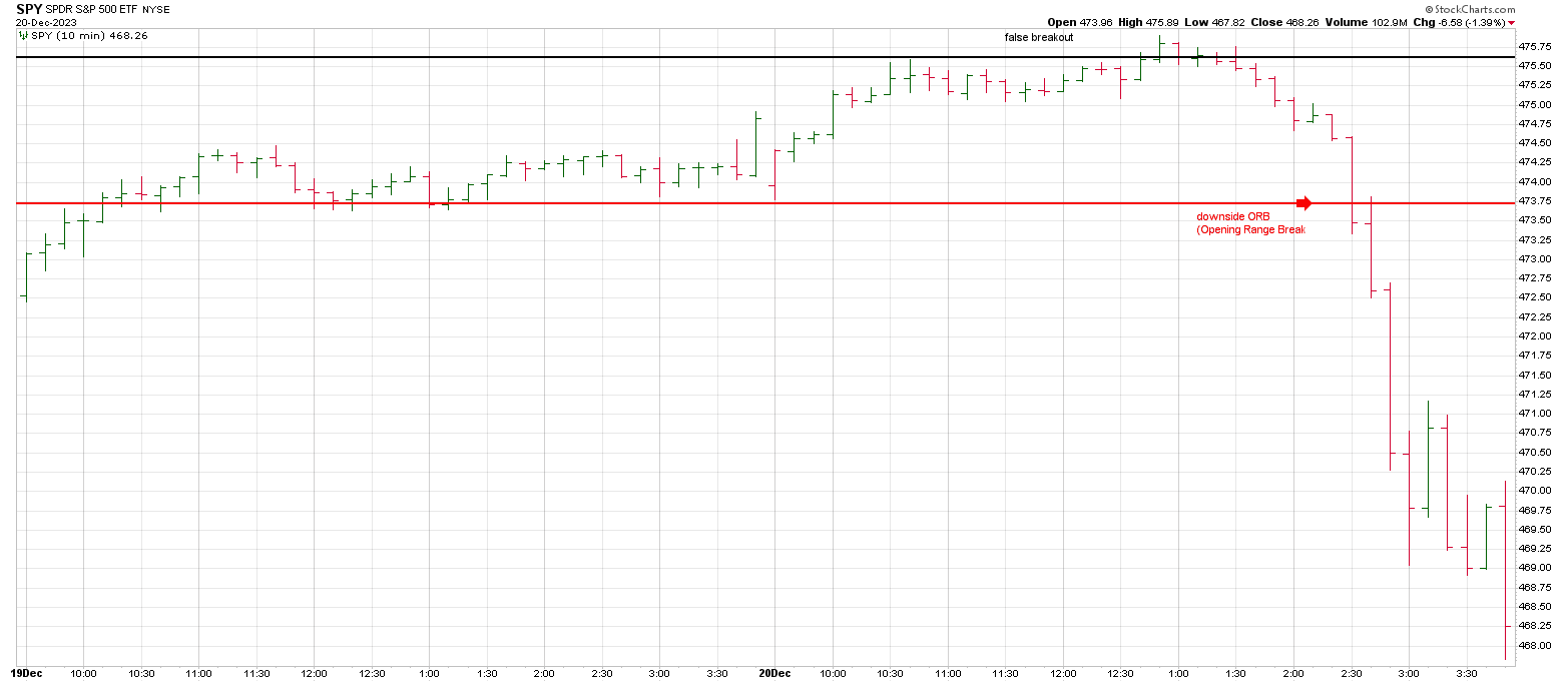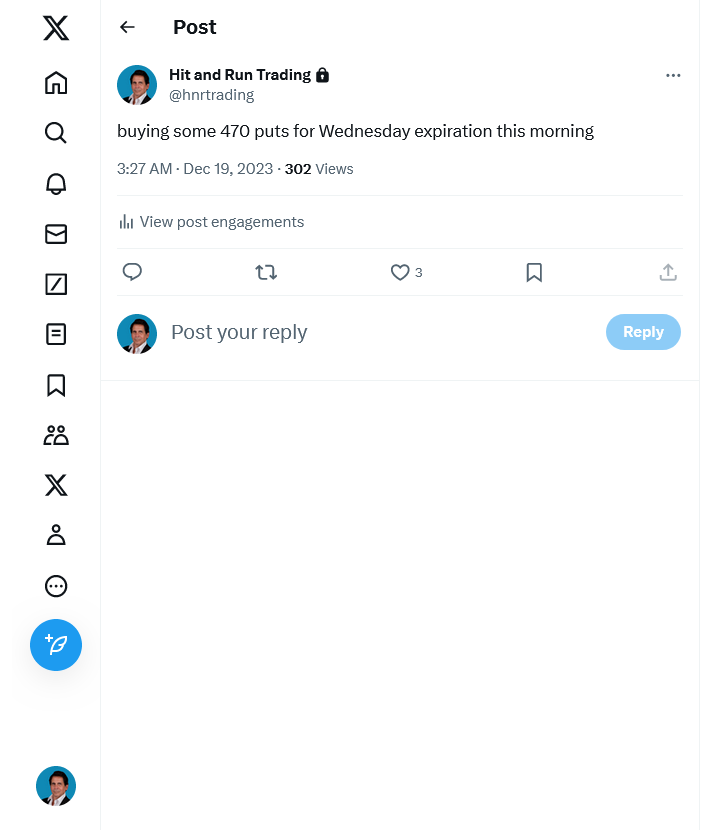 Tuesday, we posted on the Hit and Run Private Twitter Feed that 470 SPY puts for Wednesday, December 20th were “flier” buys.