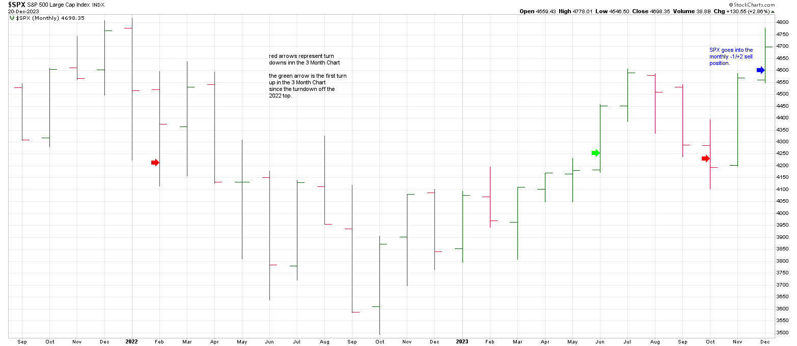 The SPX extended when it went into the Minus One/Plus Two sell position on trade above 4588 this month. This suggests the index will likely turn its 3 Month Chart back up in January.