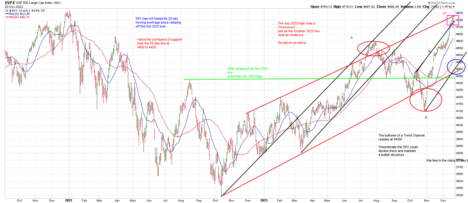 The SPX closed below that level at 4698. That may be telegraphing that a 180 degree pullback is on the table…at least, in the bullish scenario.