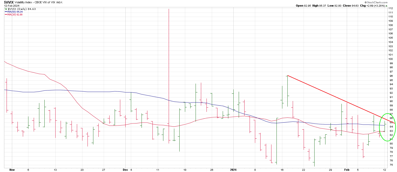 VIX and VIX derivatives surged on Monday, even when SPX was higher in the morning …and despite the triple digit gain in the DJIA.