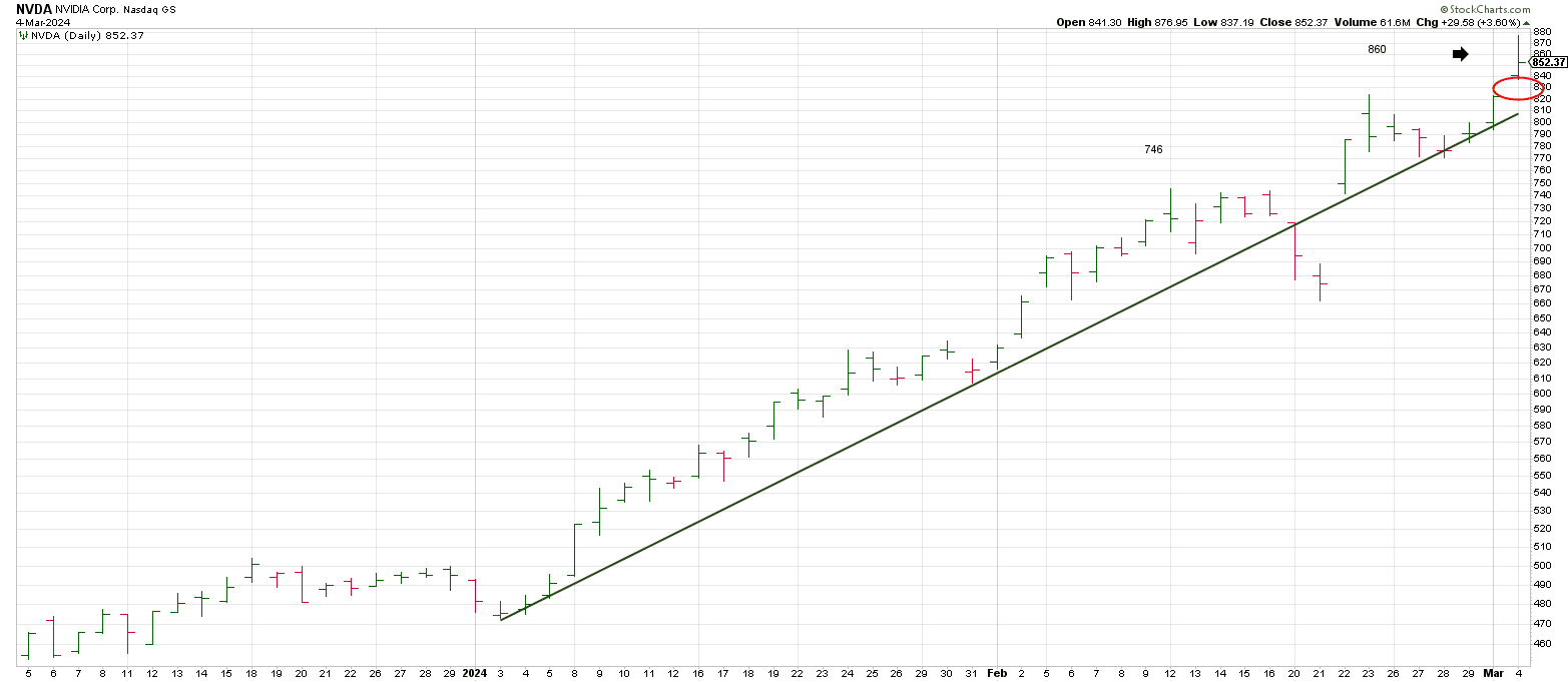It didn’t look like NVDA would close below 860 as when I point this out, NVDA was trading at 876.