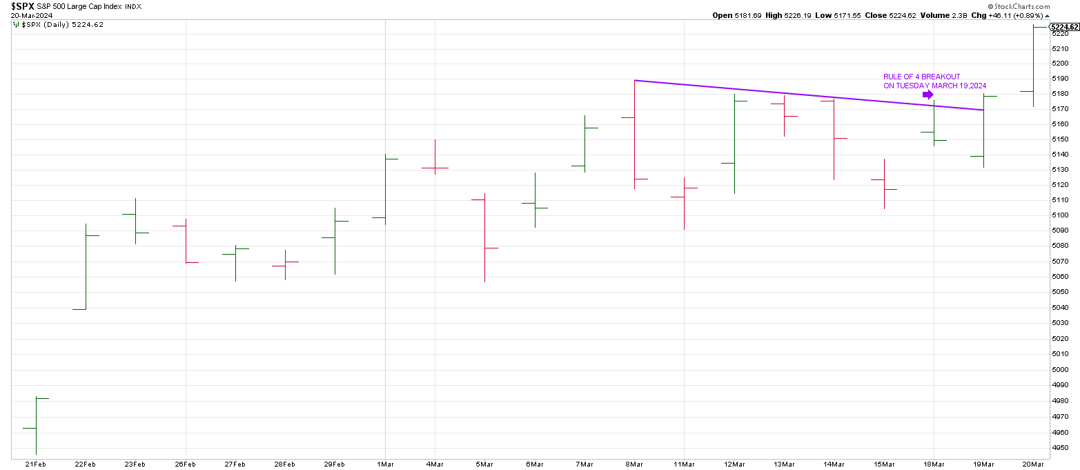 “Yesterday SPX broke out above an hourly 3 point trend line setting a record closing high.