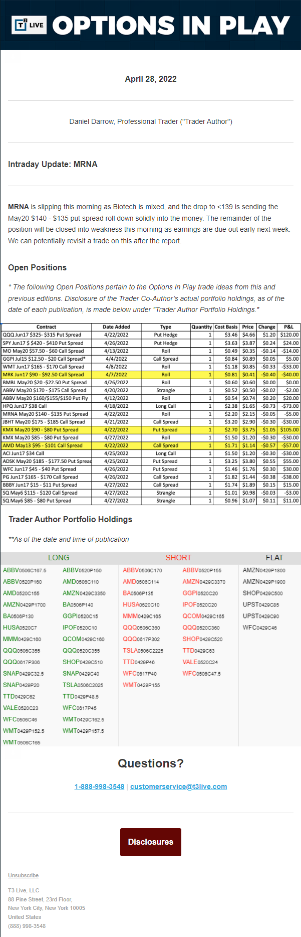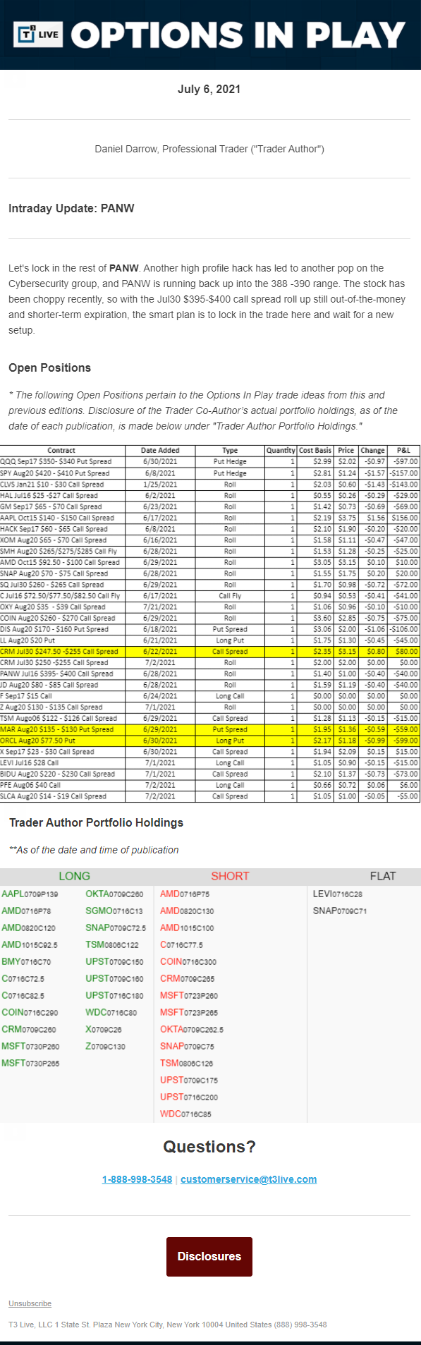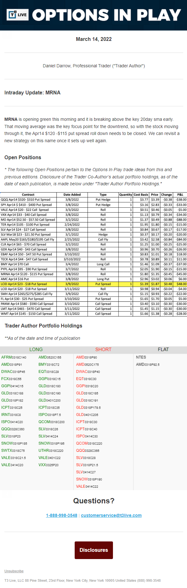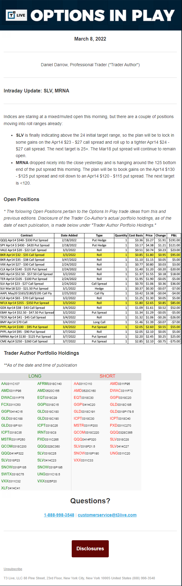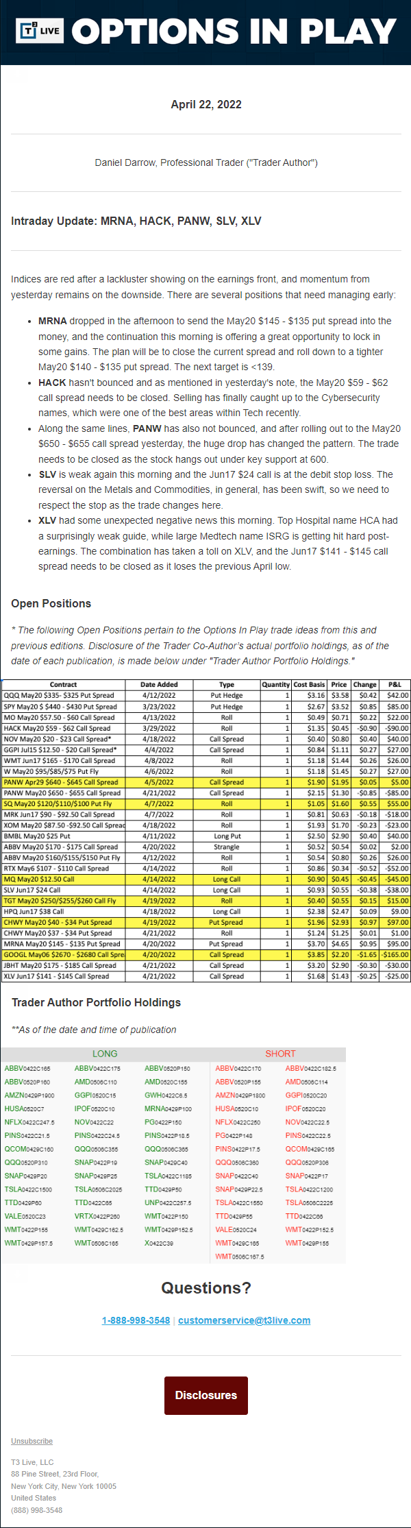 Intraday Update: MRNA, HACK, PANW, SLV, XLV