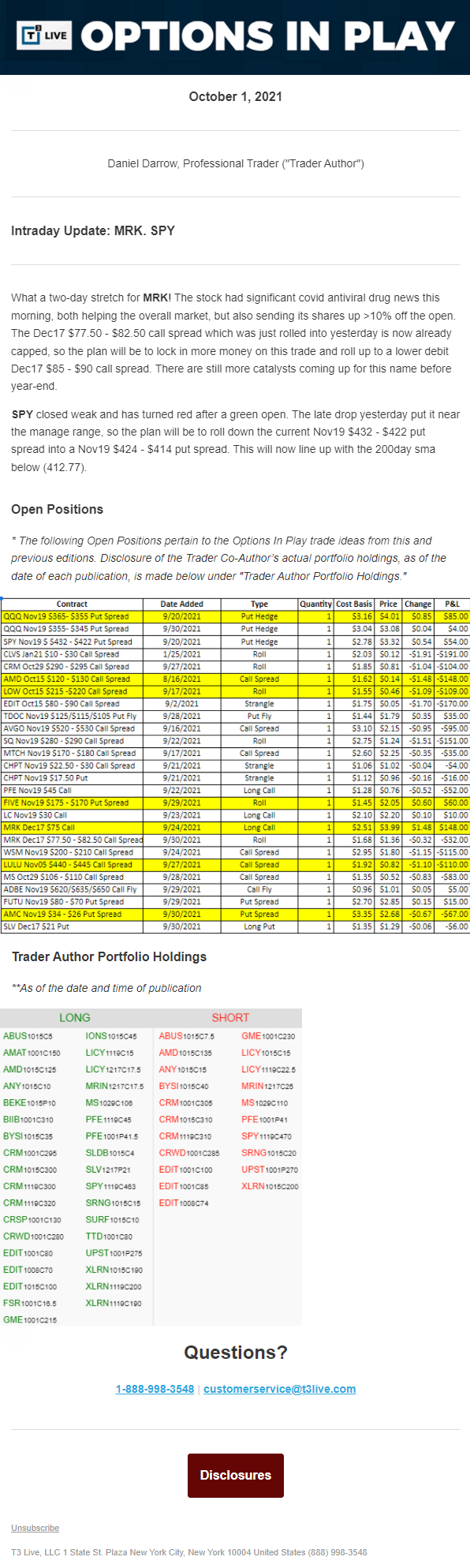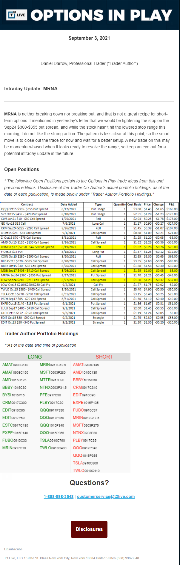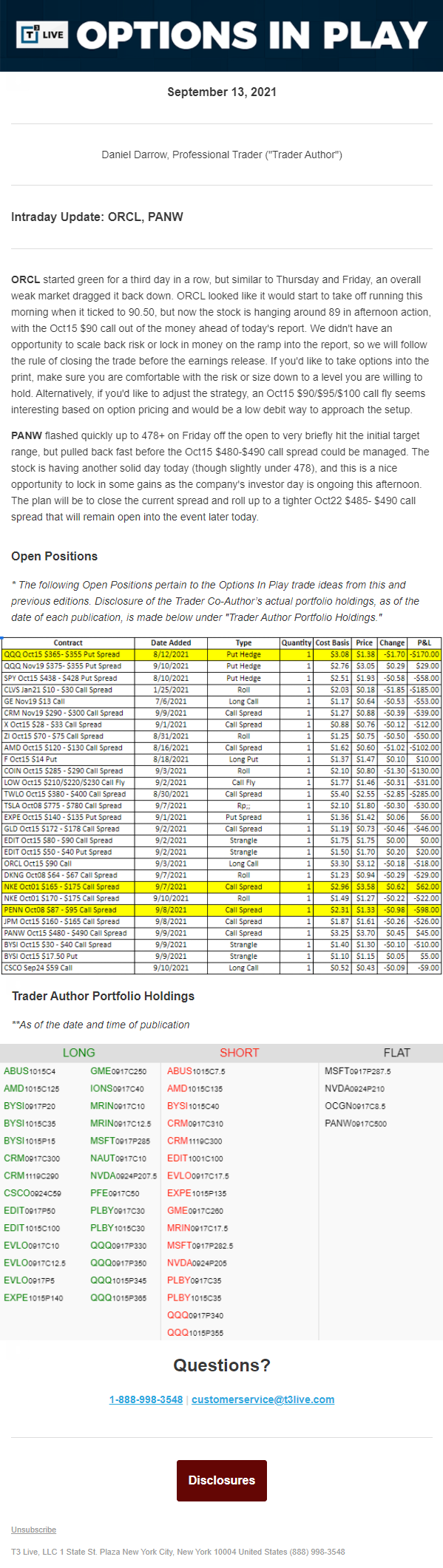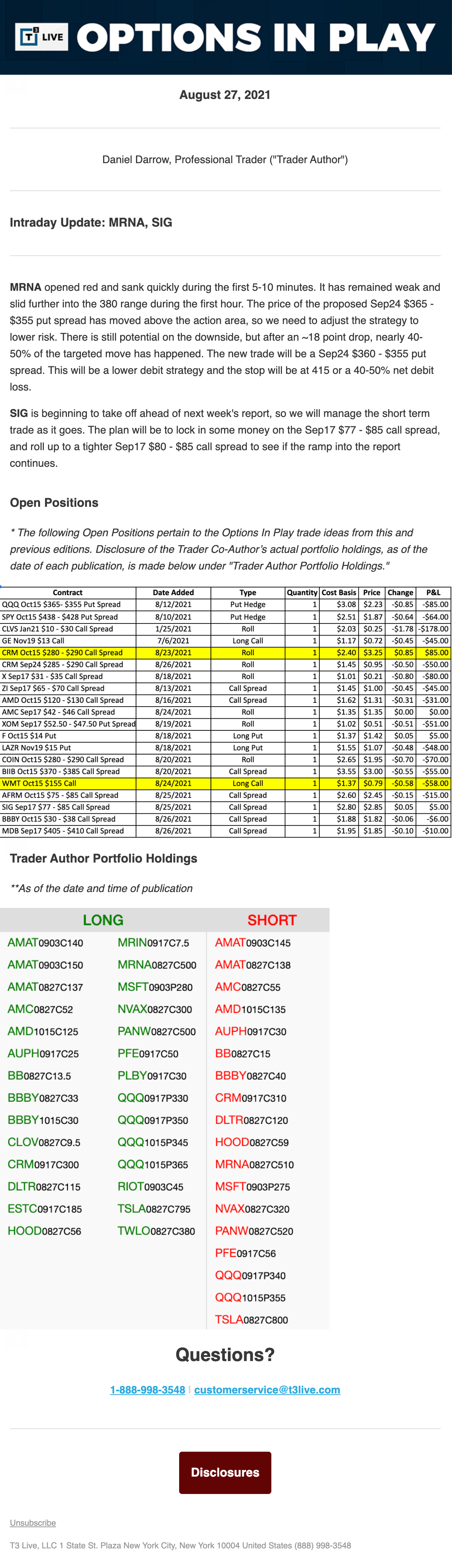 Intraday Update: MRNA, HACK, PANW, SLV, XLV