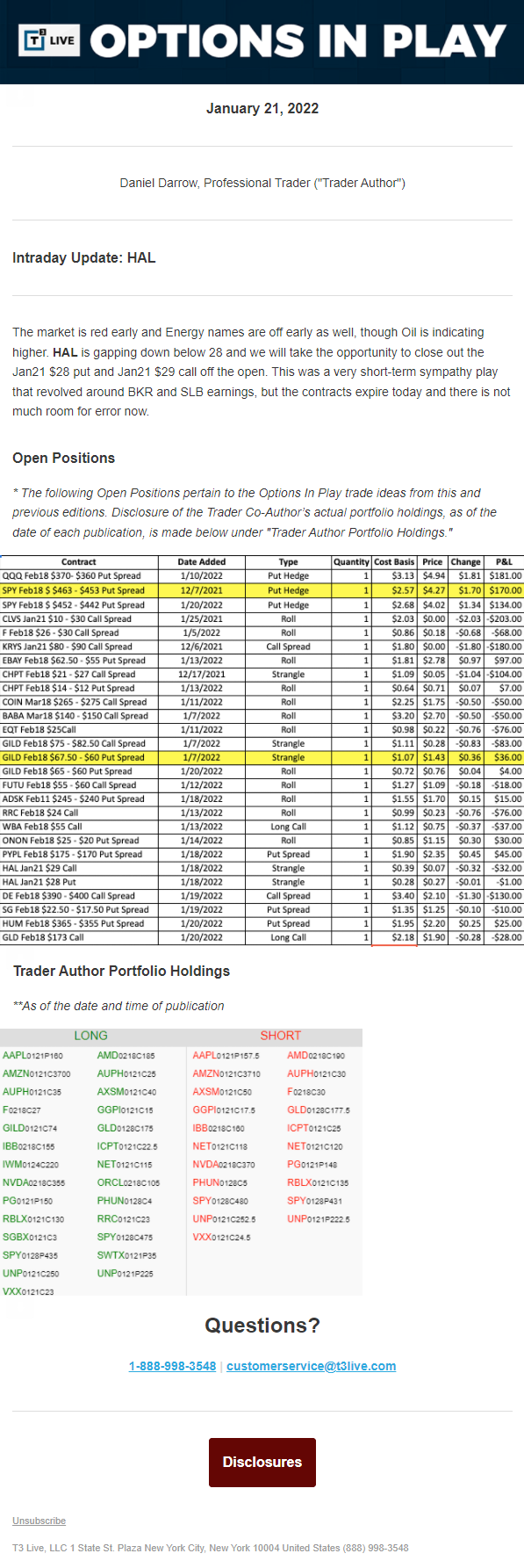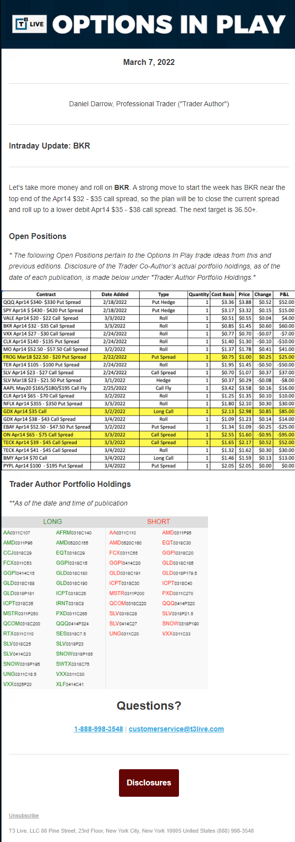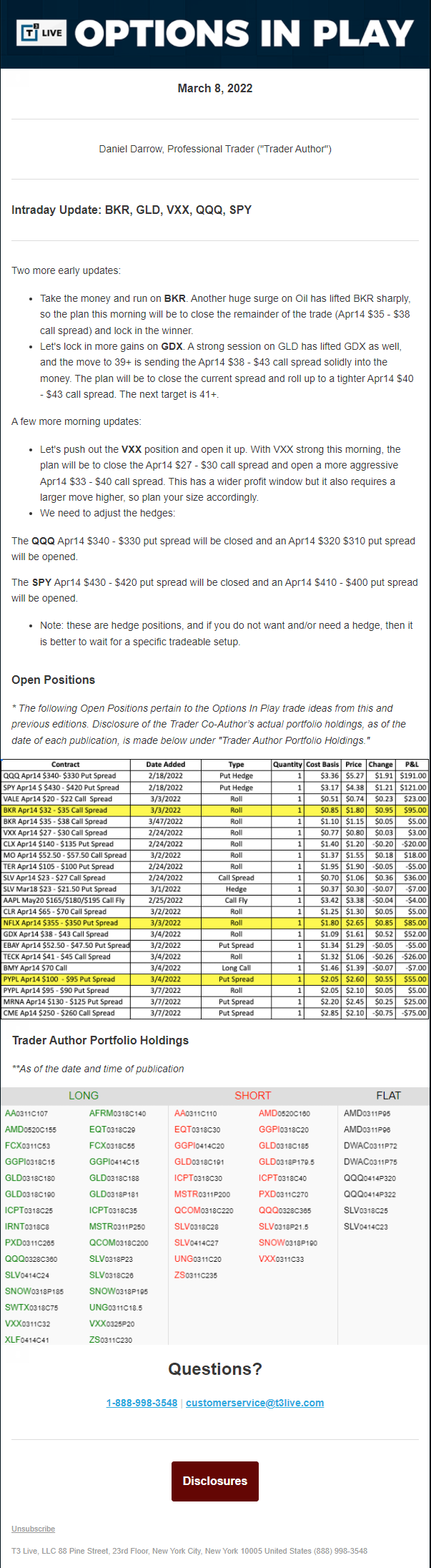 Intraday Update: BKR, GLD, VXX, QQQ, SPY