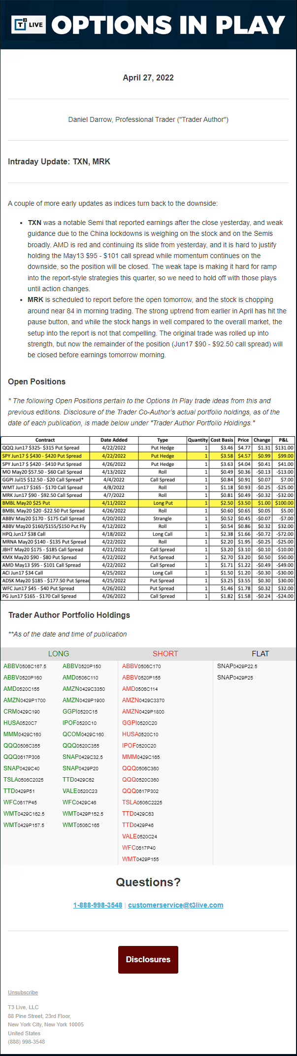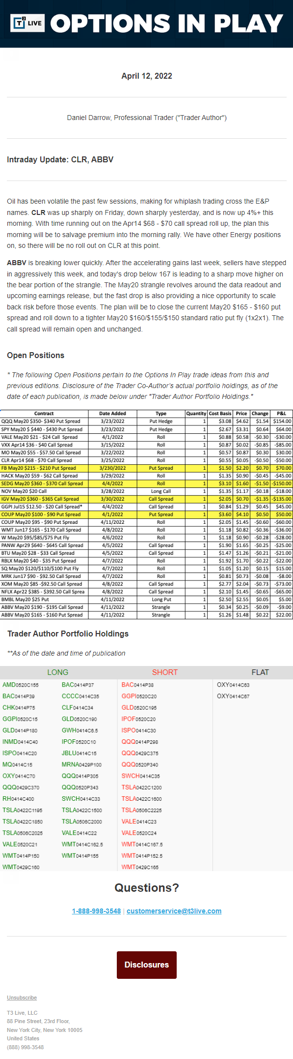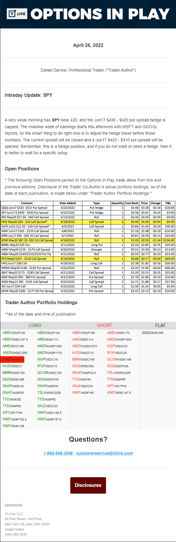 Intraday Update: BKR, GLD, VXX, QQQ, SPY