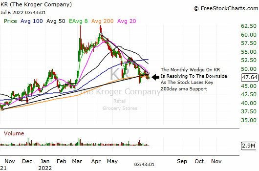 Comments: KR is a bearish trade idea. After a poor reaction to earnings, KR is setting up for a near-term breakdown. KR had decent results when it reported a few weeks ago, but the stock closed red that session, and it dropped more sharply the following day to lose the key 200day sma. It ended up stabilizing quickly after losing the 200day sma, though, but the lack of a meaningful bounce has created a lower range on the stock, and weak action over the past few sessions has put it back under that moving average again. With key support threatening to break, KR should start to pick up momentum on the downside, and the Aug19 put will be targeting a quick initial move to <45.75 (a retest of the post-earnings low) to lock in money. The swing trade will use a tighter-than-normal 30-40% net debit loss as a stop.