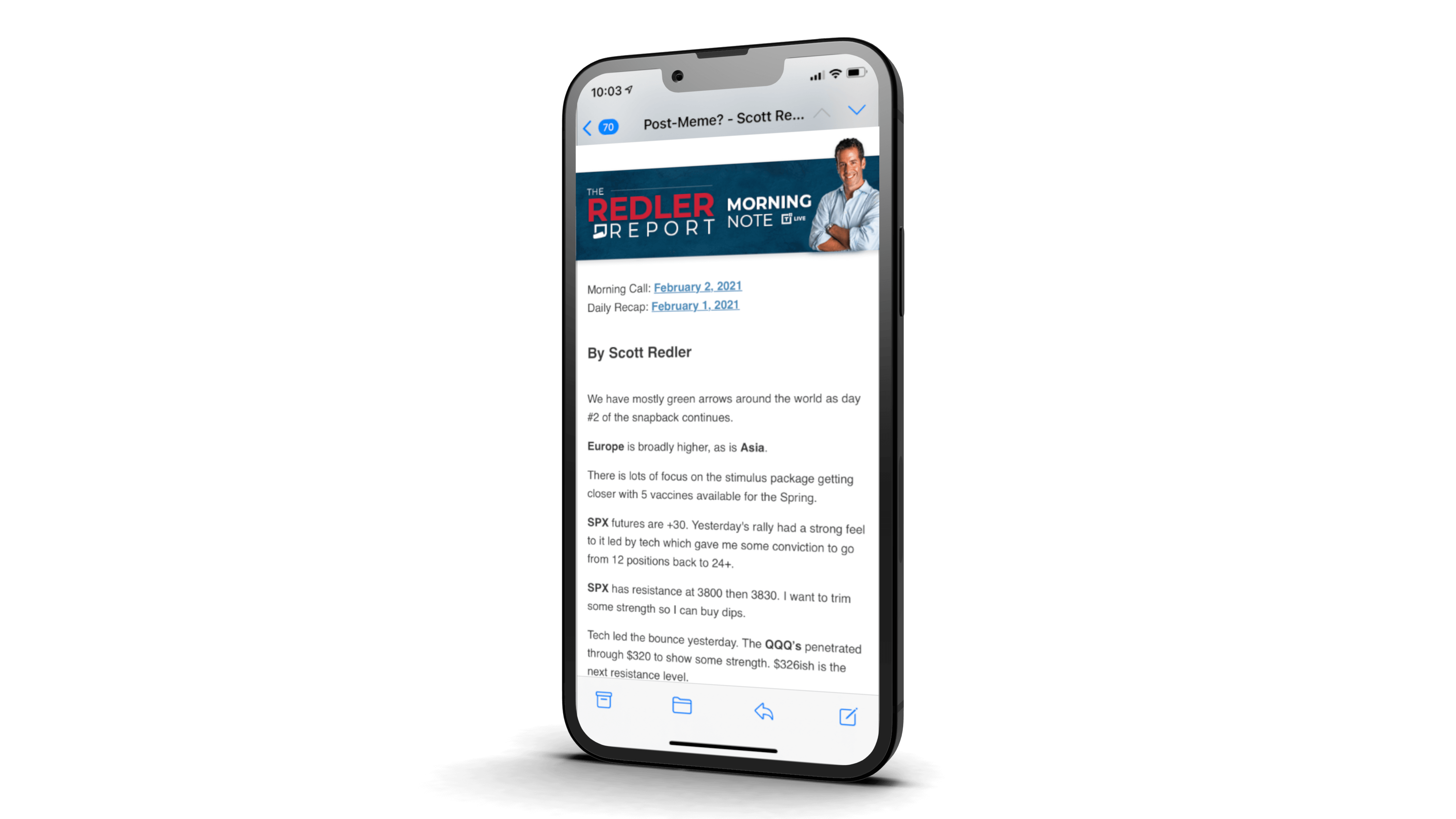 Scott Redler prepares you for the day with his pre-market gameplan, daily watchlist, in-depth analysis of 20+ stocks, ETFs, indices & cryptocurrencies, plus earnings and worldwide economic trading calendars. Follow along throughout the day with to-the-minute updates through the @RedlerPremium private Twitter feed and daily recap video email to get you ready for the day ahead.