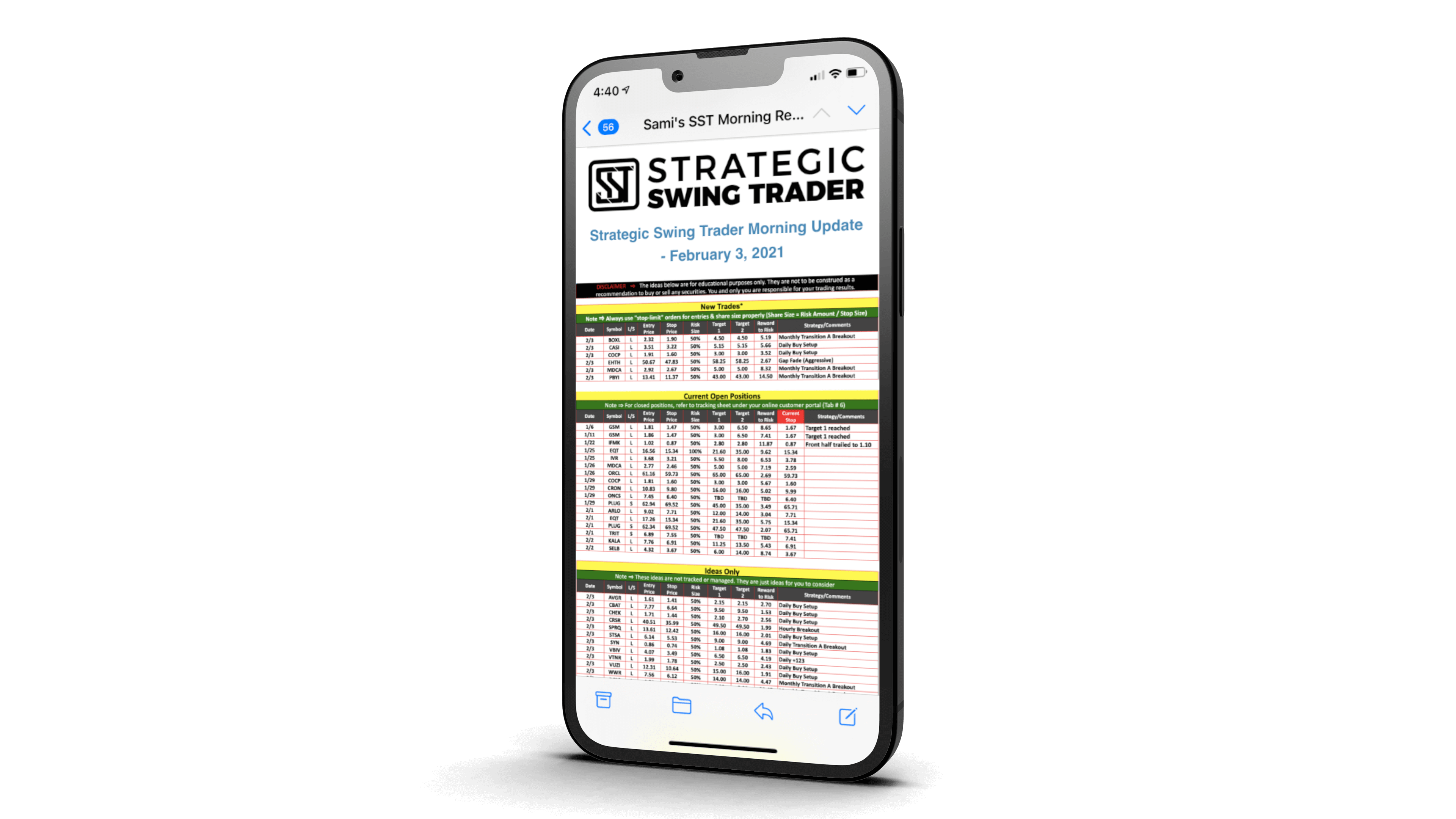 Get Sami Abusaad’s Number One daily equity swing idea each morning with exact entries, targets, and exits per trade. With a focus on small-to-midcap stocks you can ‘set it and forget it’ before the market even opens. Stay in touch and ask questions during Sami’s coaching sessions held every 1st and 3rd Monday of each month.