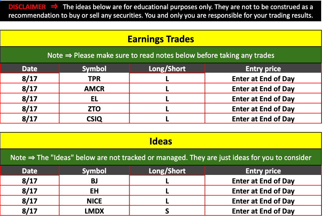 Strategic Swing Trader Earnings Update – 08/17/2022