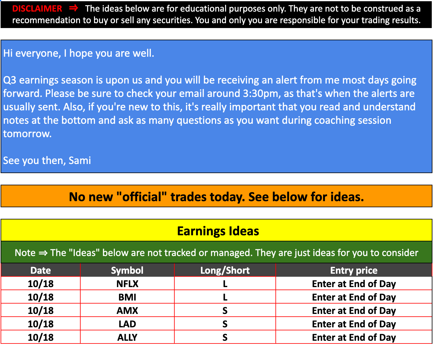 Strategic Swing Trader Earnings Update – October 18th, 2022