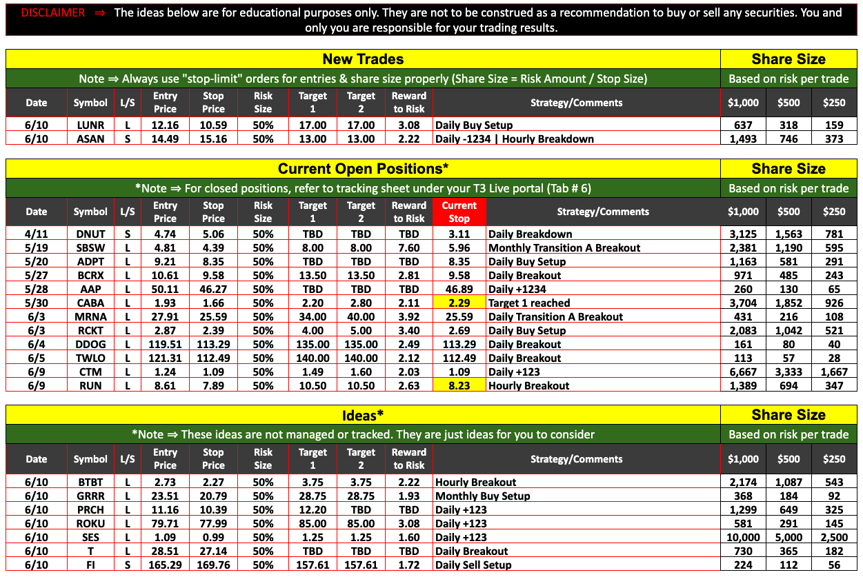 Editor’s Note: we resent the newsletter because members did not receive it. We apologize for any confusion. Please note the ASAN short idea just triggered minutes ago at $14.49. The LUNR long did not trigger.