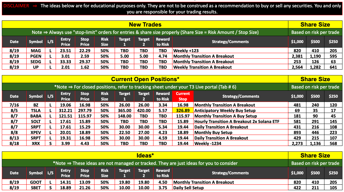 Statements by any person (whether identified as associated with T3 Live, T3 Trading Group, or any other entity) represent the opinions of that person only and do not necessarily reflect the opinions of T3 Live or any other person associated with T3 Live.